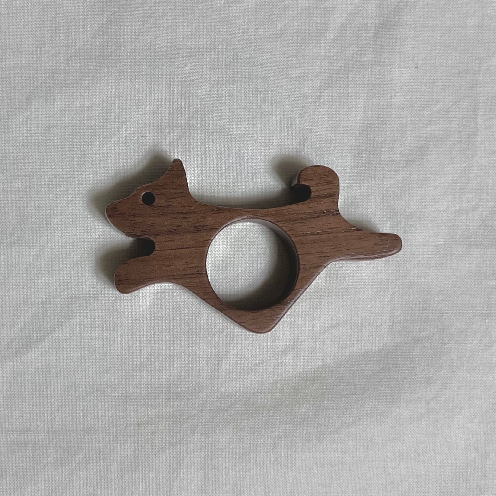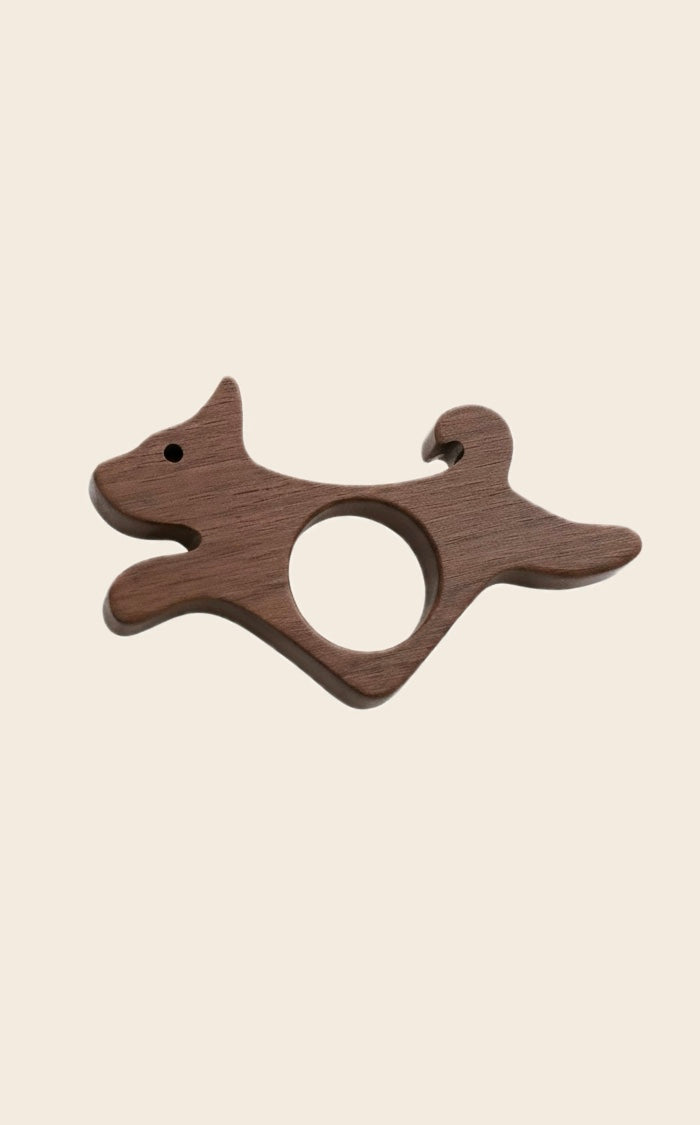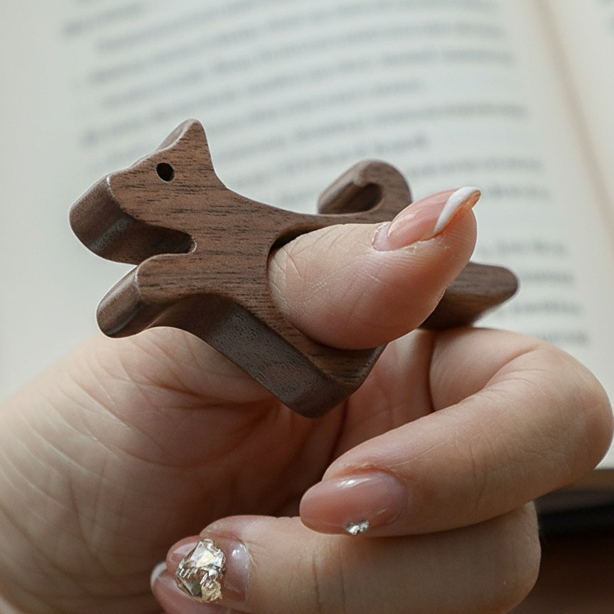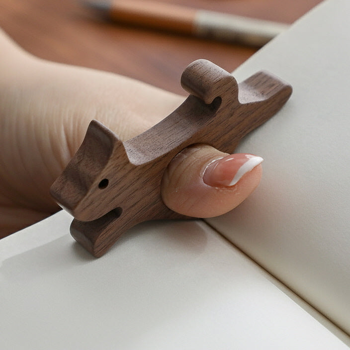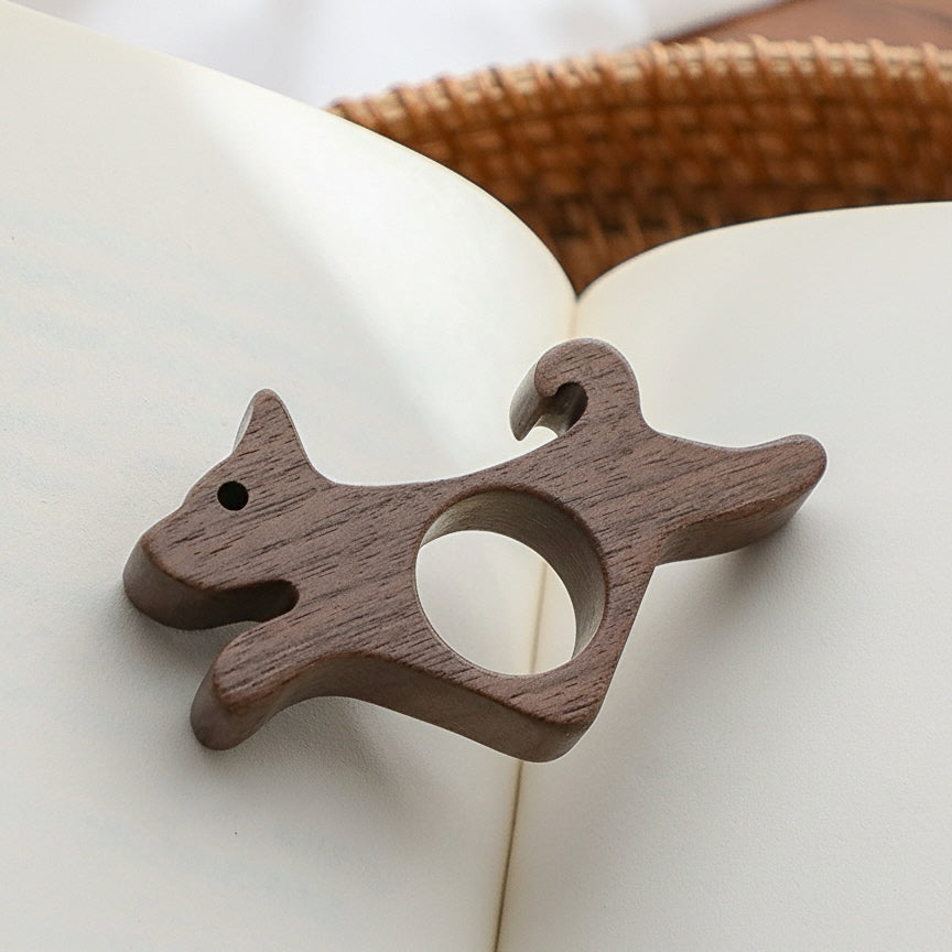A dog-shaped wooden book holder ring designed to support a calm reading rhythm.