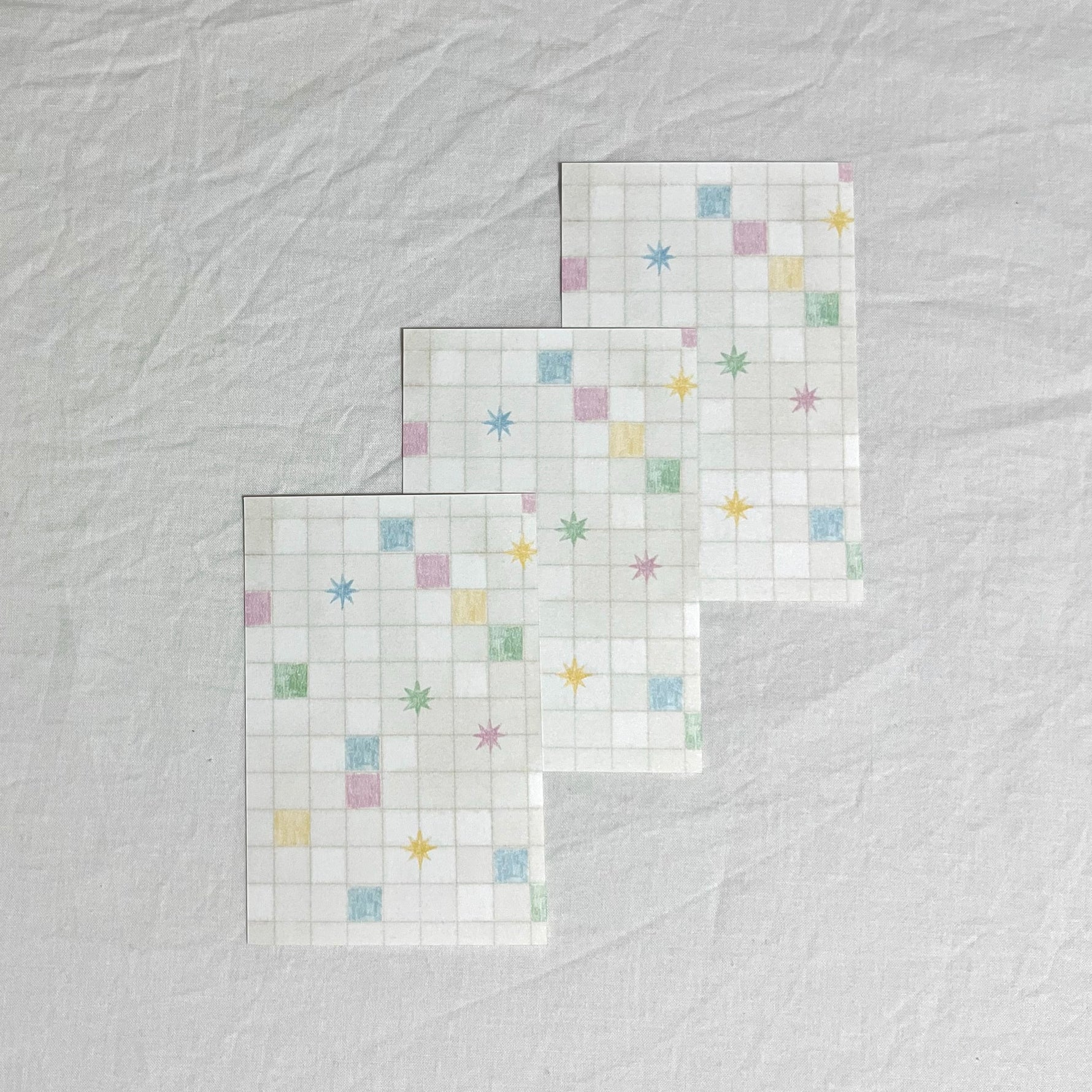 The Pastel Check Stars refill features pastel tiles sprinkled with soft star accents. Its light and cheerful design adds warmth to even the simplest memos, making it perfect for capturing small thoughts and everyday moments.