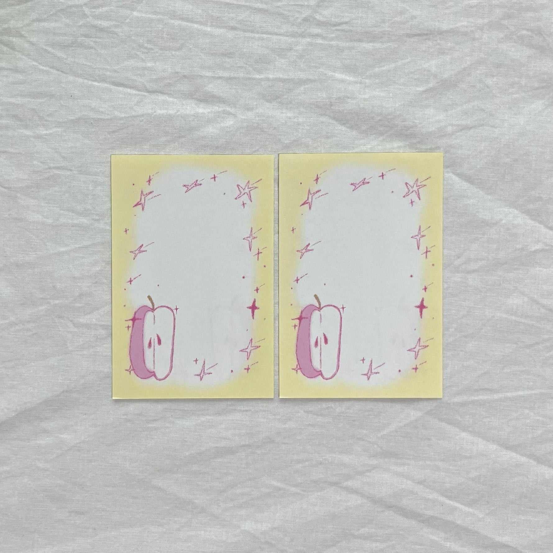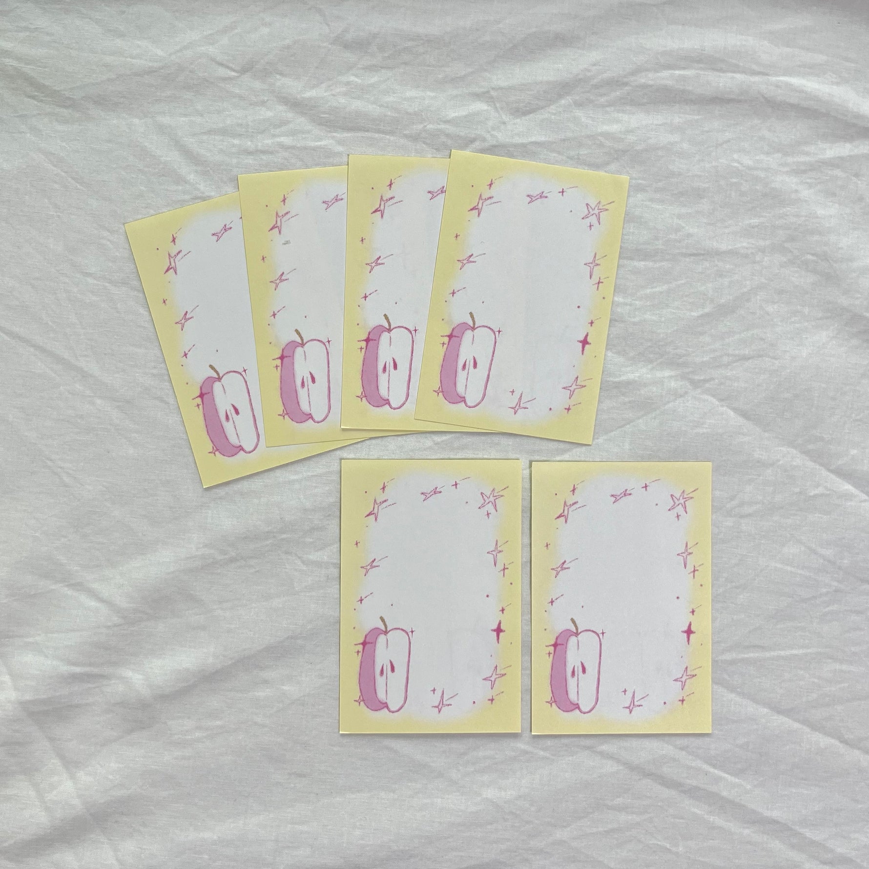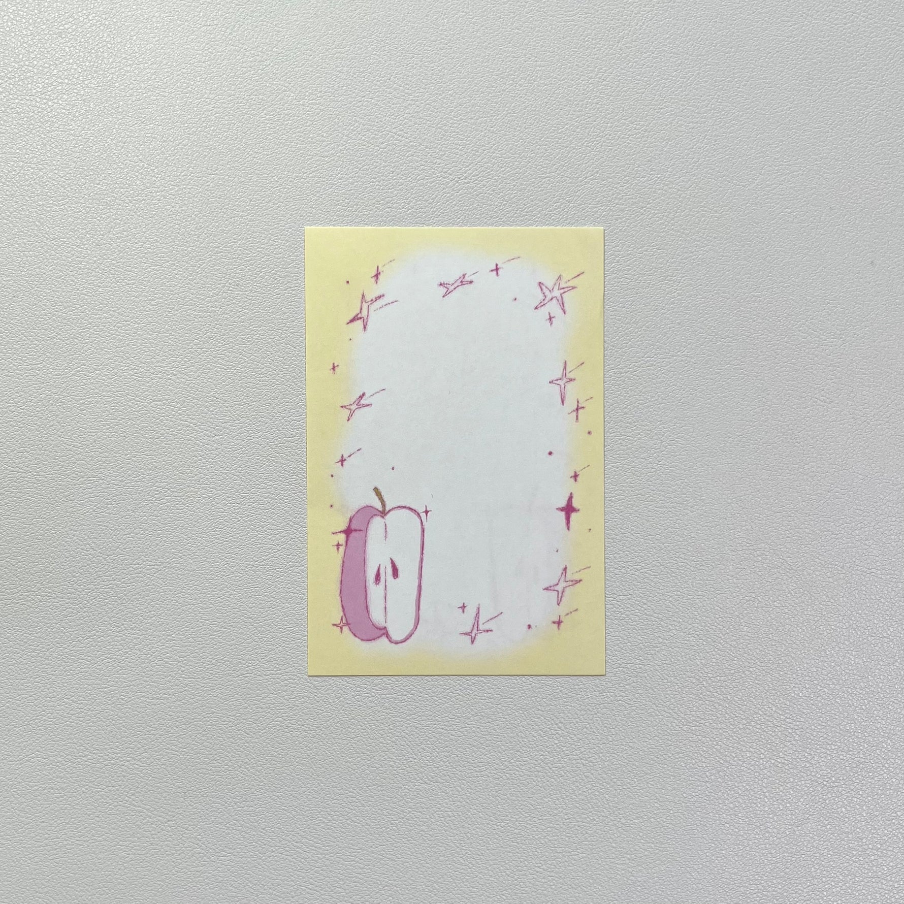 With its gentle yellow frame and hand-drawn apple illustration,