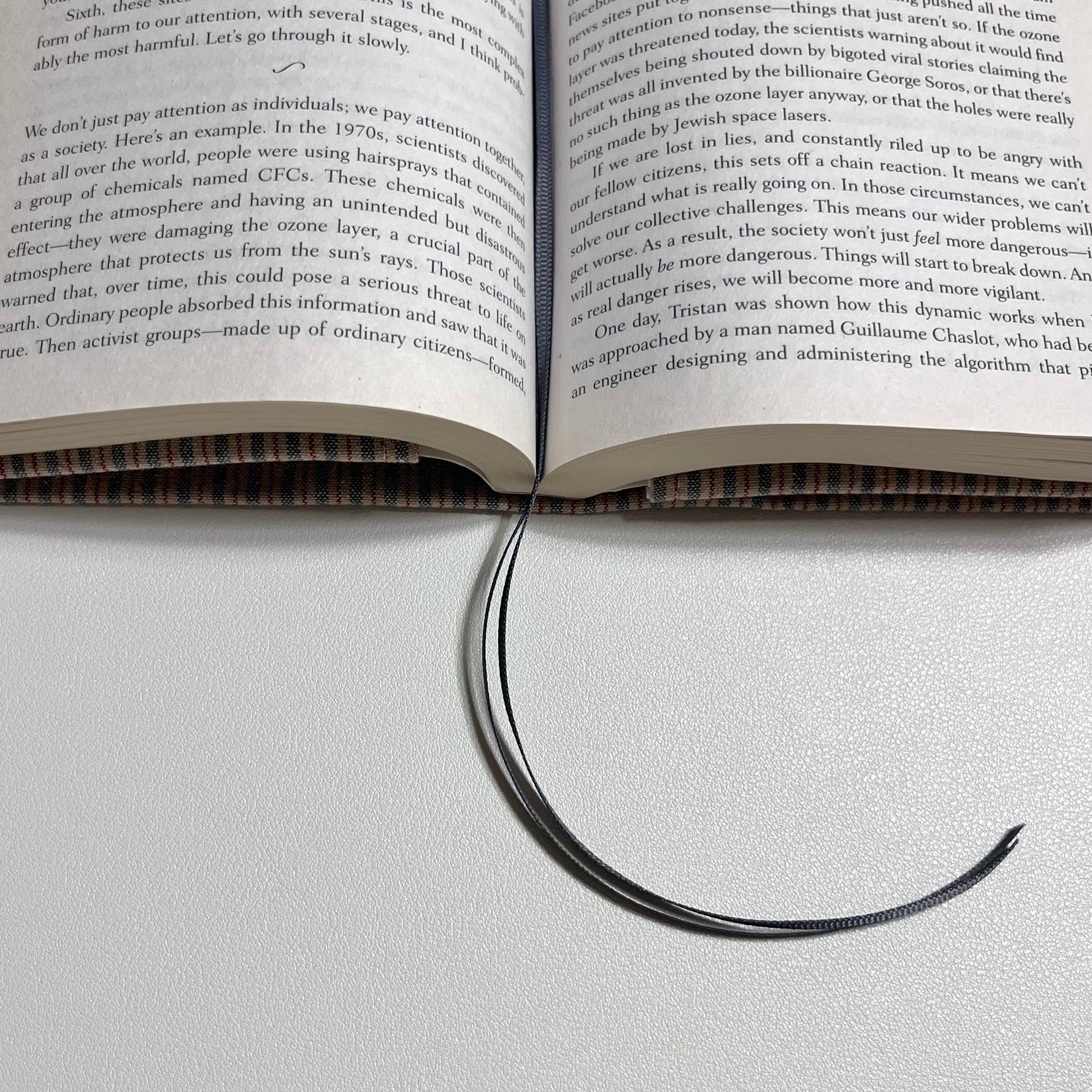 It comes with a built-in bookmark ribbon, so you can mark your page without carrying a separate bookmark.