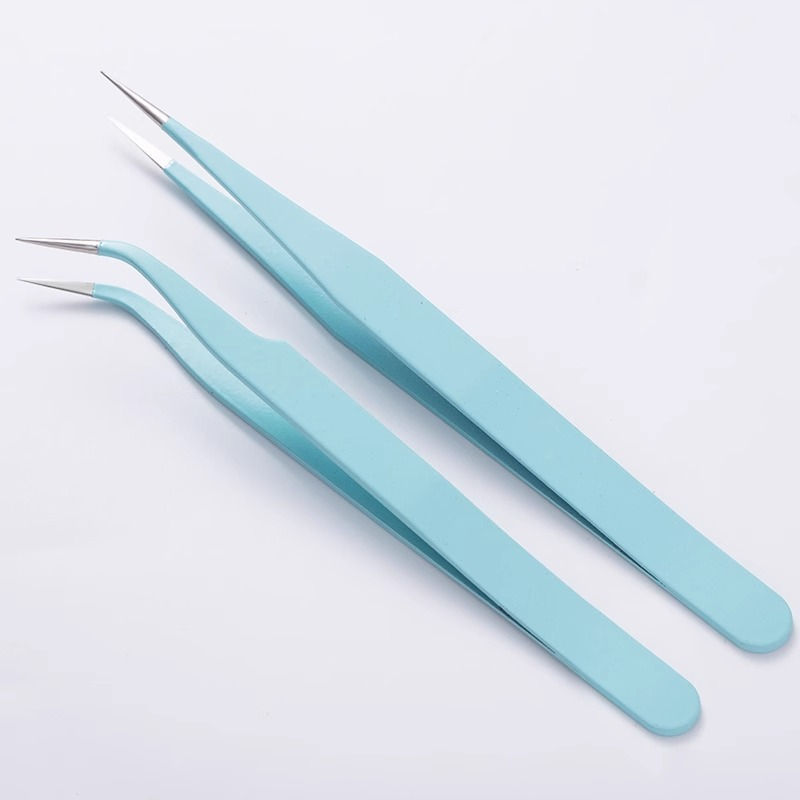 Fresh and soft mint green tweezers designed for light, precise handling. With both straight and curved tips included, this set adapts easily to different angles and fine details.