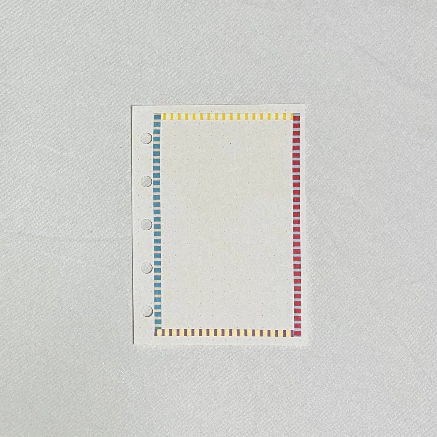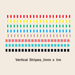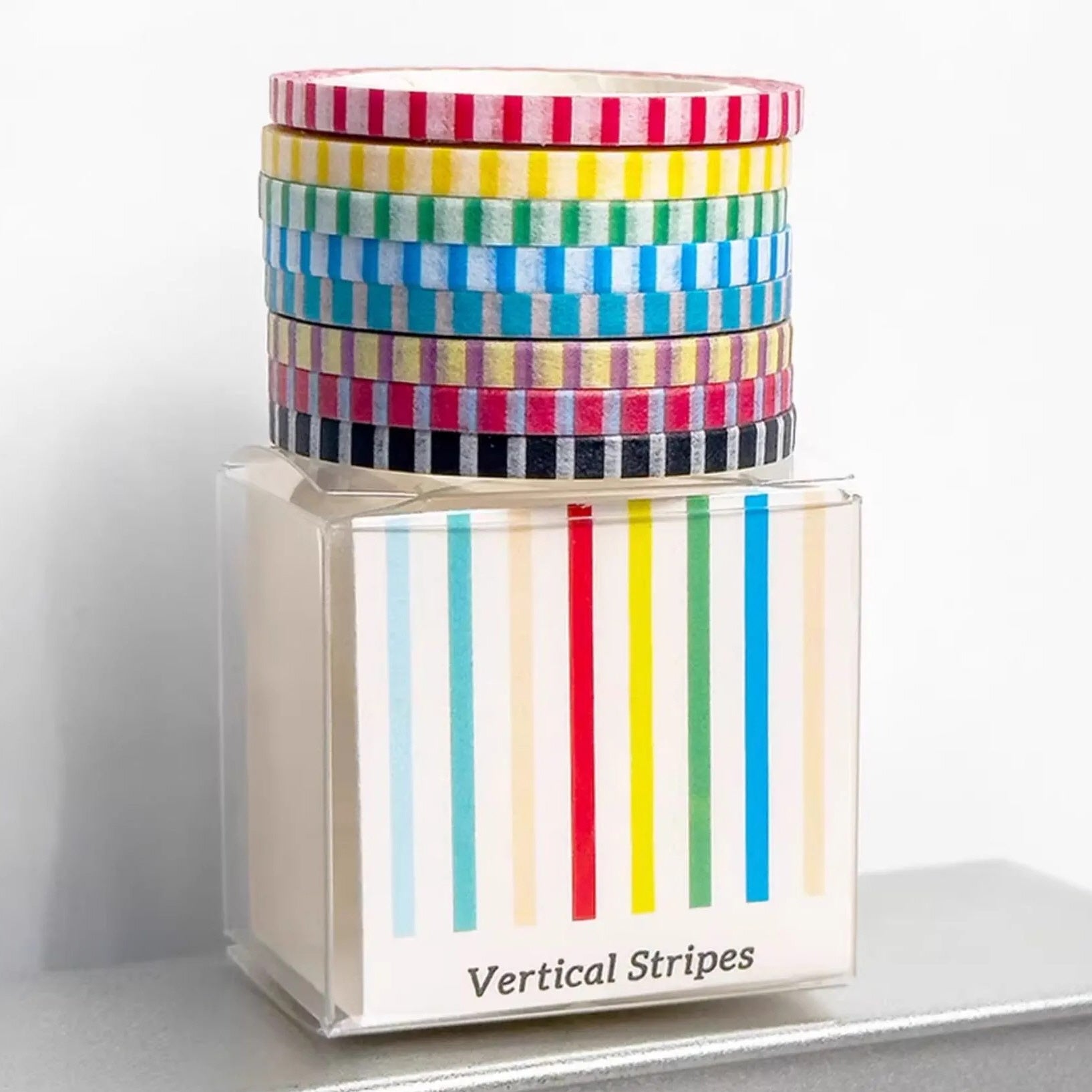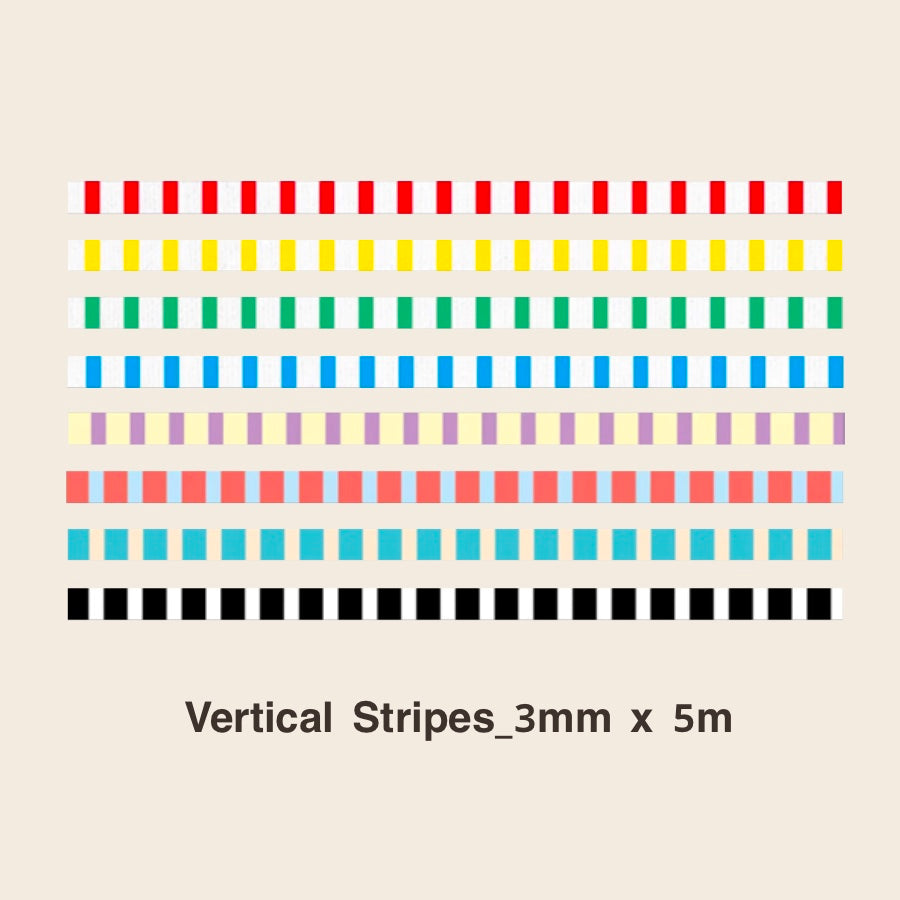 This masking tape set features a clean vertical stripe design that adds a pop of detail to any page. With a slim 3mm width, it’s perfect for layout dividing, highlighting lines, or sectioning your notes.